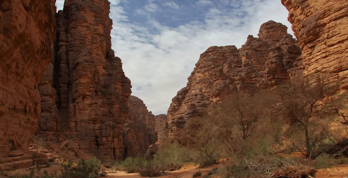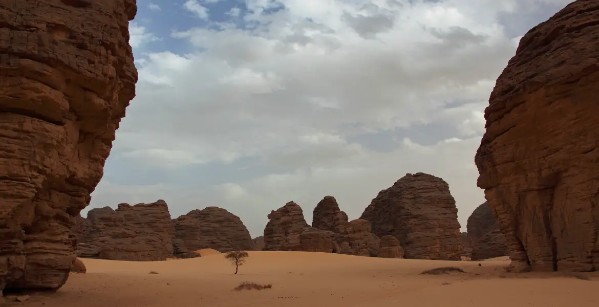 A scenic hike through Essendilène Canyon leads us to a stunning emerald guelta hidden among towering cliffs. Along the way, we visit a nomadic village and experience Tuareg hospitality.