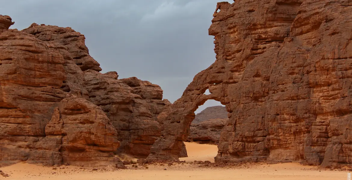 We begin our adventure in the vast dunes of the Erg Admer, heading to Tegharghart to admire the famous “Crying Cow” engraving, a 7,000-year-old masterpiece of Neolithic art.
